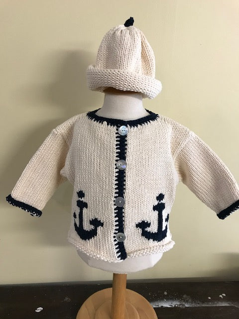 Baby Sweater Hand Knit in the USA, Matching Hat