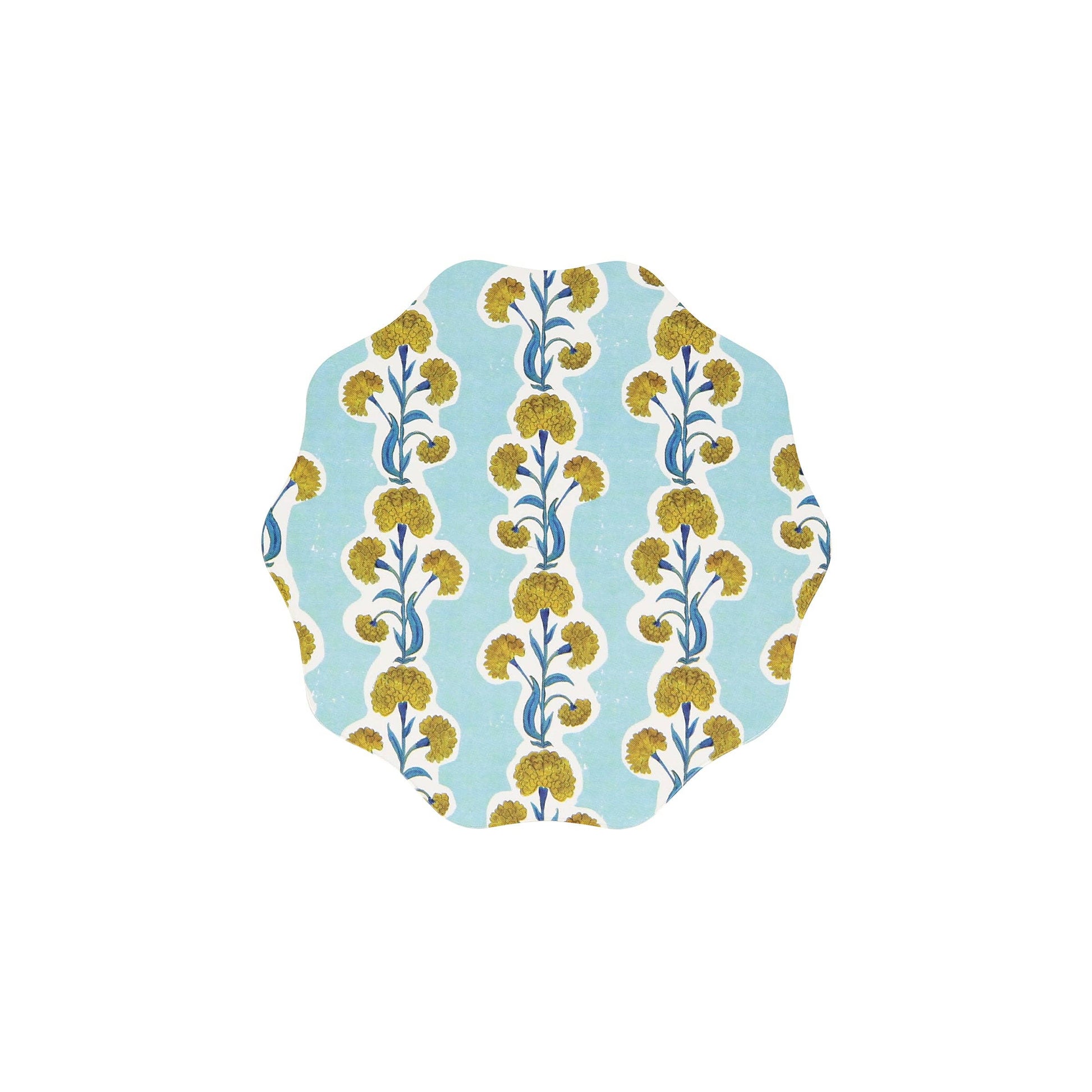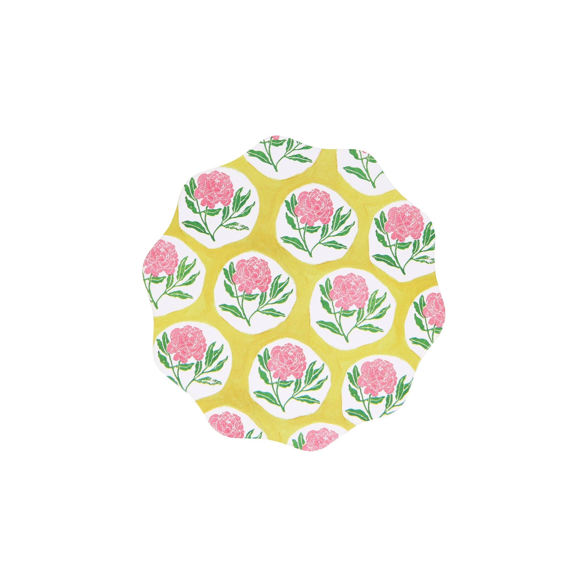 * Composite wood round coasters with a cork backing * Featuring 6 different Molly Mahon flower patterns * Wavy edge * Reusable gift box with magnetic closure * Pack of 6 in 6 designs * Product dimensions: 4.25 x 4.25 x 0.125 inches