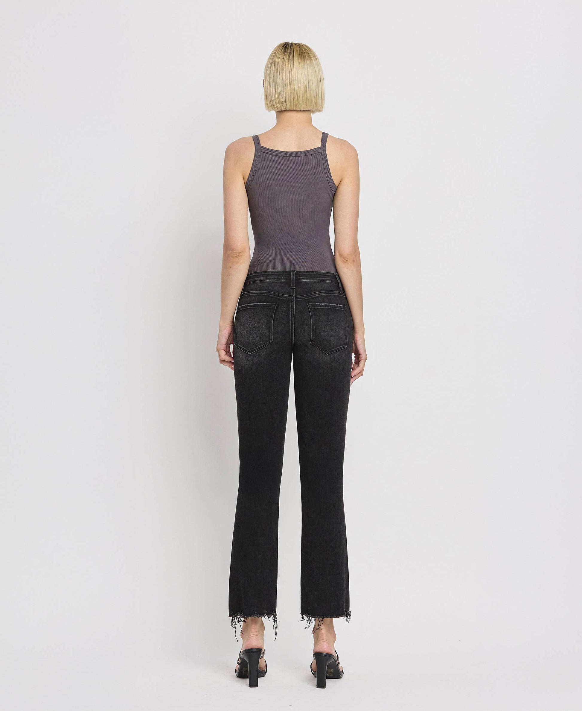 MID RISE RAW DISTRESSED HEM CROP FLARE JEANS