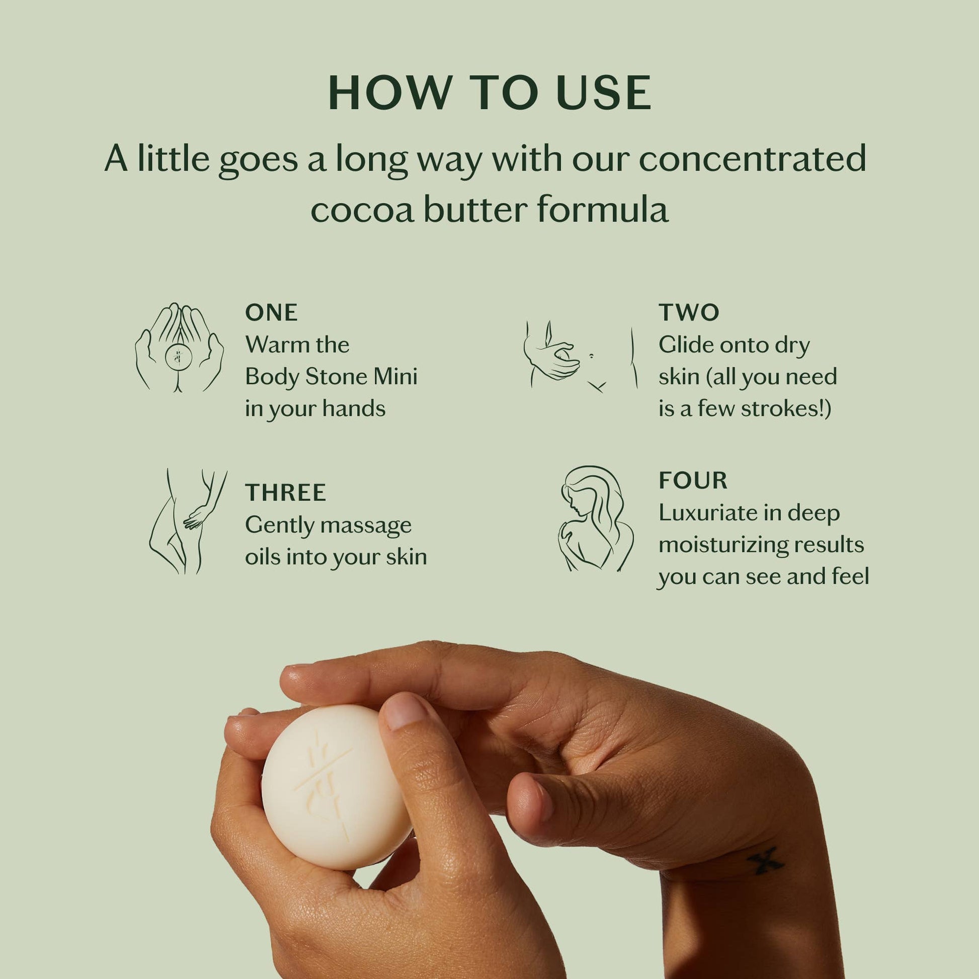 Daily, Sleep, and Grounding Our beloved Body Stone Mini is 1 oz and it's multi-purpose uses are as brilliant as our full size Stones. Packed with our nutrient-rich, plant-based formula that melts on contact to intensely nourish skin, the Body Stone Mini is perfect for on-the-go moisture and for nourishing hands, lips, and any other bits that need a little extra tenderness.