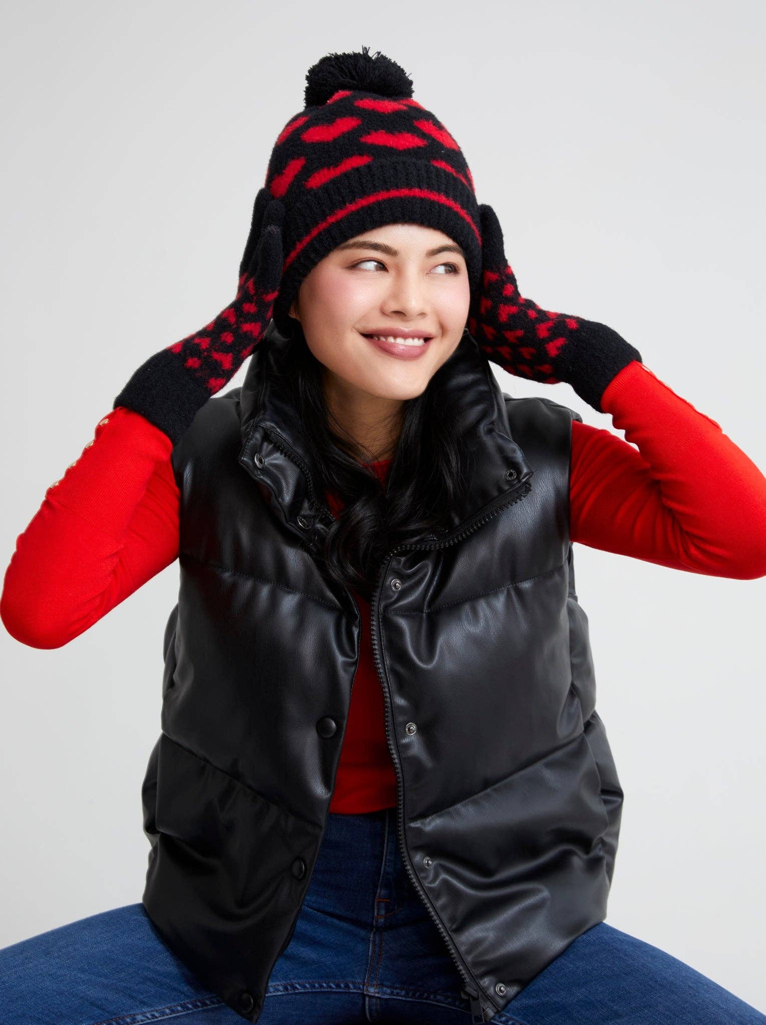 Spruce up your cold weather accessories with Shiraleah's Valentina Touchscreen Gloves. These gloves feature a cozy material in an adorable heart pattern. Made from nylon, polyester, and elastane with a functional touch screen compatible fingertip detail, the Valentina Touchscreen Gloves eliminate the choice between comfort and convenience during the cold winter months.